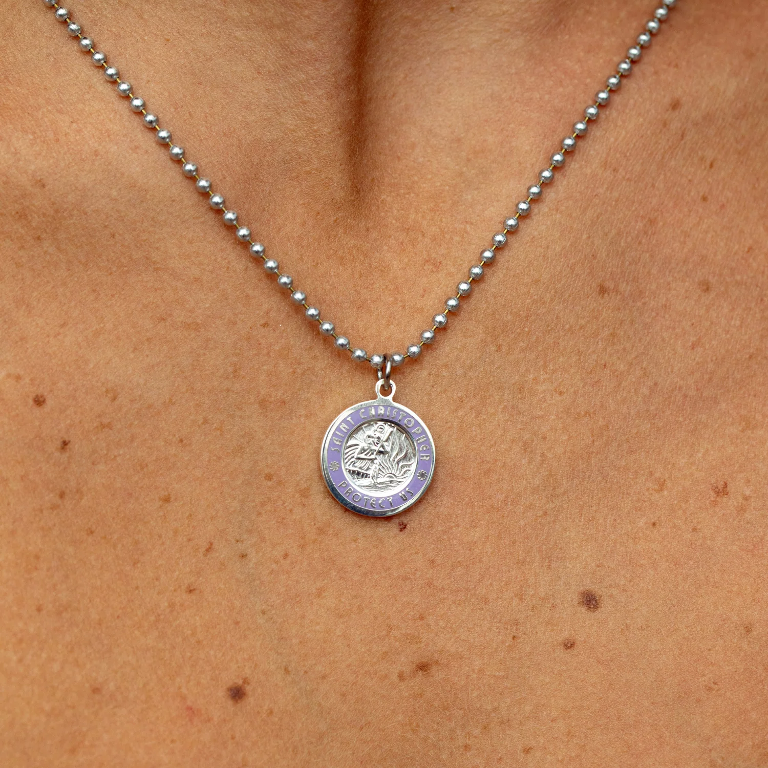 Our newest color way of our best selling St. Christopher surf necklace! Silver and lavender, the cutest combo!
